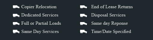Welcome To Pacific TransportCopier Transportation and Handling for Small Businesses, Wholesale Companies, Dealerships, and Distributors.As Southern California's fastest growing copier transportation service, Pacific Transport specializes in the handling and transportation of Copier equipment and other digital imaging office products. Our advantage is our background and unique understanding of the copier industry. We provide real cost effective solutions with customer satisfaction as our number one objective. Our professionalism and flexibility keeps our customers coming back. And with our daily routes in Orange County, San Diego, Los Angeles, Ventura, Santa Barbara, Riverside and San Bernardino Counties, We have become an indispensable tool for many Companies throughout Southern California. We encourage repeat business and will customize our services to fit your unique needs. Feel free to give a call at 714.805.6683 or email us anytime copiermove@gmail.com |
